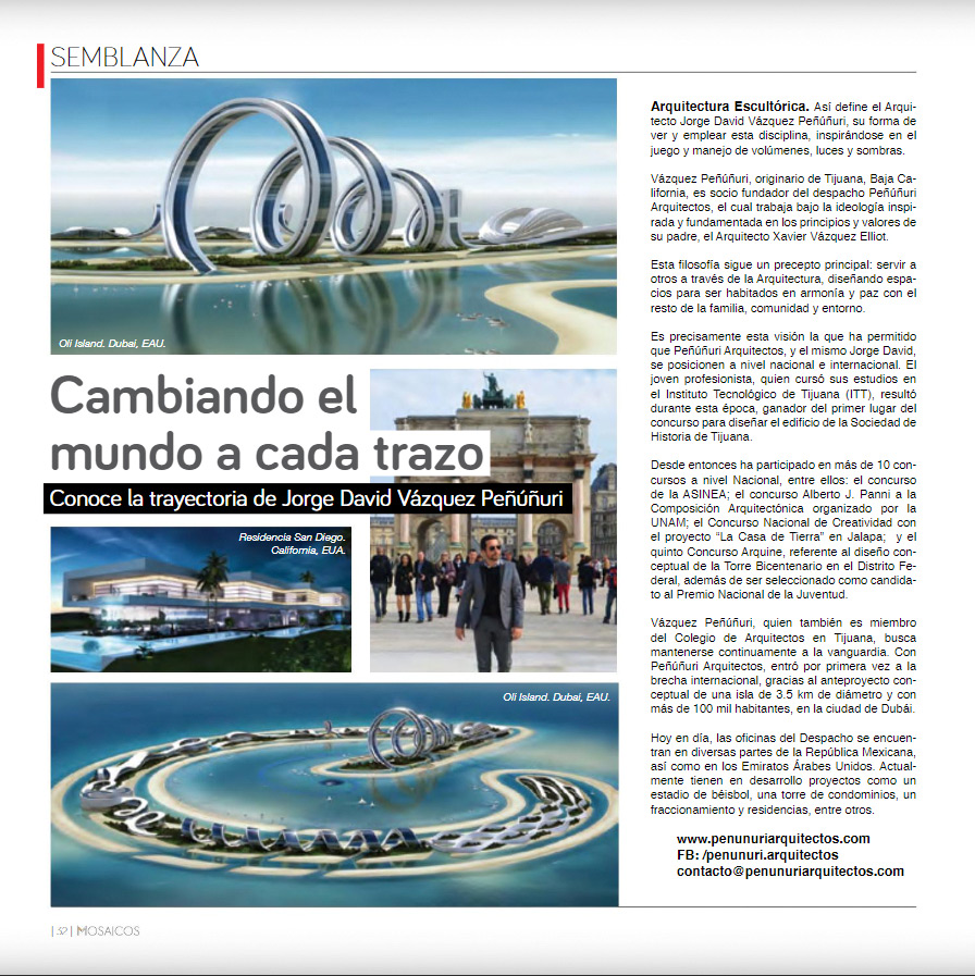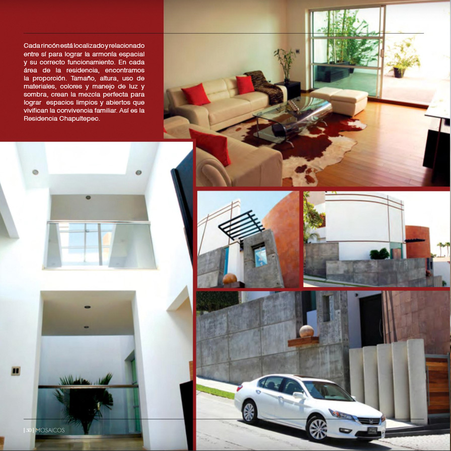 Publicación de artículo sobre Peñúñuri Arquitectos en 3ra edición de Revista Mosaicos de Interiorismo, Diseño y Arquitectura. Página: Portada, 28, 29 y 30, 32 y 33.