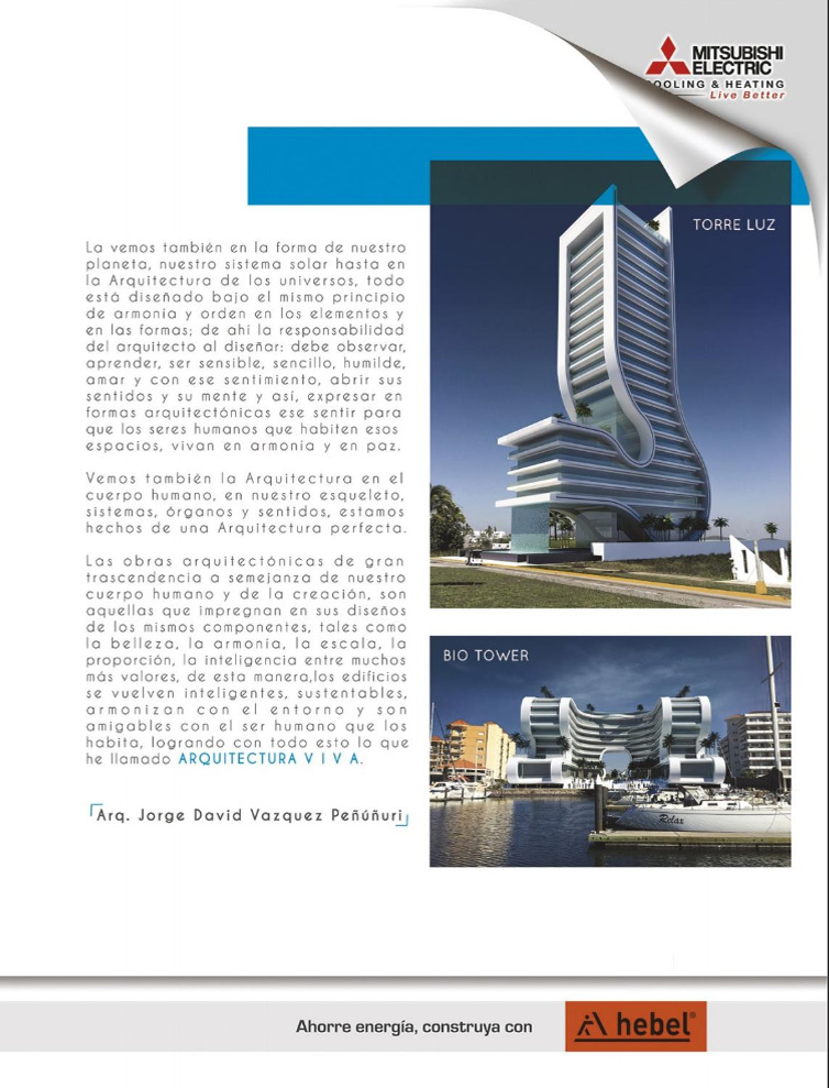 En Tu Obra, revista de arquitectura y construcción originaria de Sinaloa publicó un artículo sobre el Arq. Jorge Peñúñuri, Presidente de Peñúñuri Arquitectos y su forma de ver la arquitectura con el tema de Arquitectura Viva. Edición número 28, páginas 42 y 43