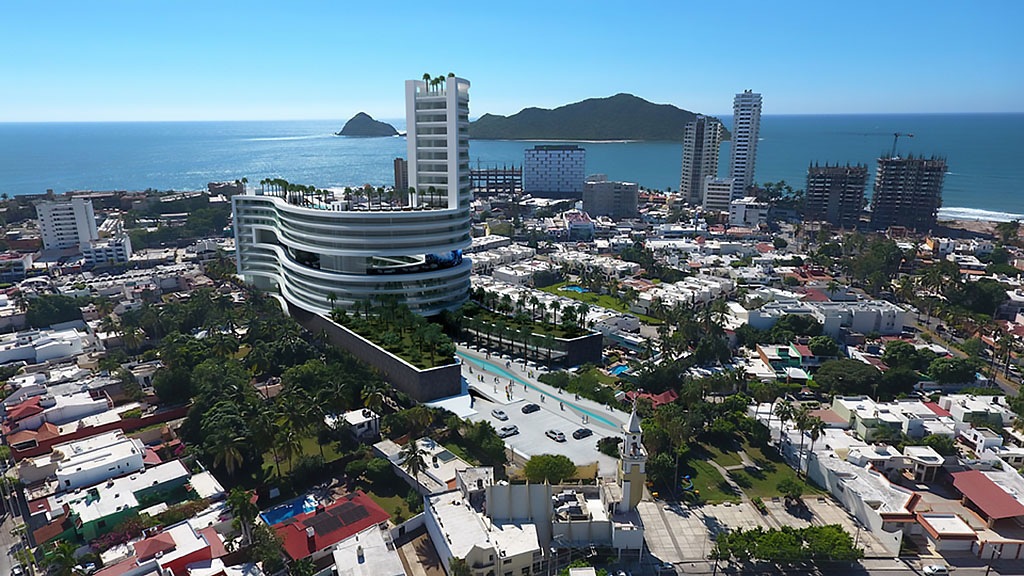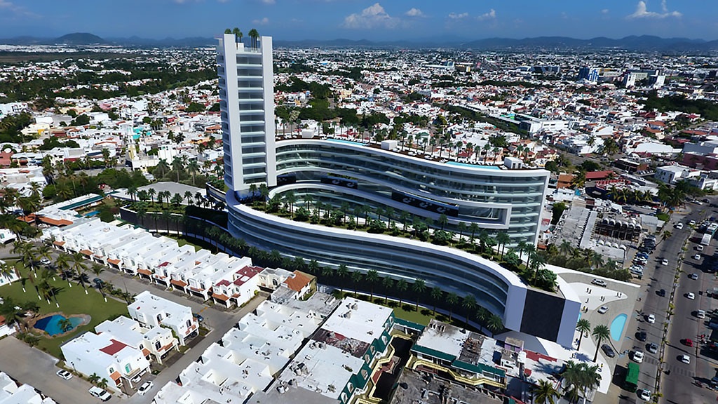 PASEO MAZATLÁN UN EDIFICIO ESCULTÓRICO, ORGÁNICO DE LÍNEAS CURVAS DE USO MIXTO, HABITACIONAL Y COMERCIAL, CUENTA CON 19 NIVELES, 177 DEPARTAMENTOS, UN HOTEL CON 126 SUITES HOTELERAS, ÁREA COMERCIAL CON 83 LOCALES COMERCIALES, 4 RESTAURANTES, UN CASINO Y ESTACIONAMIENTO SUBTÉRRANEO. CON ÁREAS COMUNES Y AMENIDADES COMO LOBBY, PISTA PARA CORRER, GIMNASIO, SALÓN DE EVENTOS, SPA, RESTAURANTE-BAR, ALBERCAS Y ASOLEADEROS, TERRAZAS Y JARDINES.