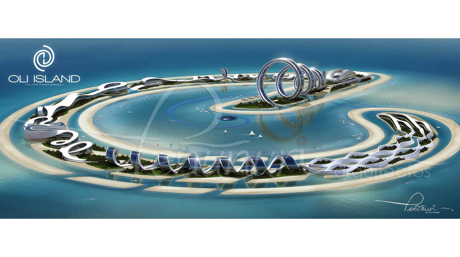 Oli Island, es el lugar donde las nuevas ideas toman vida, en esta isla se concentran, entrelazan y conviven todas las ciencias, las artes, el deporte, el entretenimiento y el habitat del ser humano en su más alta expresión, todo esto dentro de una nueva forma de arquitectura. en donde todas las áreas se unen e interrelacionan formando el edificio más grande del mundo, en armonía con el ser humano, el medio ambiente y el entorno, siendo así un proyecto que trascenderá en el tiempo.